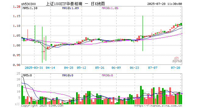 上证180ETF华泰柏瑞(530300)业绩比较基准为上证180指数收益率,管理人为华泰柏瑞基金管理有限公司,基金经理为李茜,成立(2024-12-30)以来回报为10.34%,近一个月回报为5.13%。